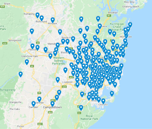 For the full list of suburbs, please see below or view in Google Maps >